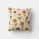 This soft throw pillow features blooms dancing across a soft, cream background, showcasing a whimsical array of flowers in warm shades of red, orange, and yellow. Each flower is playfully illustrated with distinct shapes, featuring vibrant petals and bold centers, complemented by scattered dots and delicate leaves. The cheerful composition evokes a joyful and inviting atmosphere, perfect for springtime energy.
