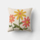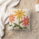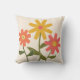 Dit eenvoudige ontwerp heeft een boho of bohemien sfeer. Zowel leuk als kleurrijk, dit kussen zal een pop van kleur brengen en een nieuwe look geven aan uw huis of slaapzaal. Het kussen beschikt over originele kunst bestaande uit drie bloemstengels van gestileerde madeliefjes. Kleuren zijn perzik, sinaasappel, groen en mosterdgeel of goudstaafgeel. Kussens zijn een gemakkelijke en betaalbare manier om uw ruimte bij te werken. Afbeelding ©K. Kees, 2022. Alle rechten voorbehouden.