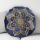 Deze elegante boho kussen hebben een gouden mandala op een marinesblauwe inktextuurachtergrond.
