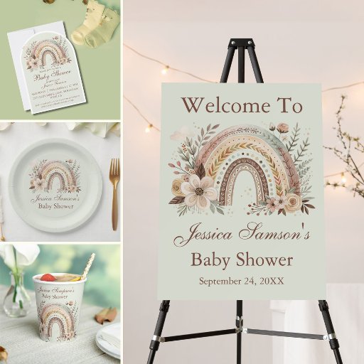 Boho Rainbow And Flowers Baby ShowerOntworpen door Printable Pics