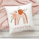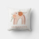 Deze trendy en stijlvolle kussen zijn voorzien van een boho-regenboog, bestaande uit verschillende neutrale tinten en een boeket van oranje en perzikkleurige bloemen. Voeg jouw naam toe aan personaliseren.