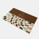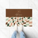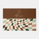 Boho Warped Checkerboard Gepersonaliseerde Monogram Deurmat. Getoond in aardetinten palet in tinten van bruin en groen, maar ALLE KLEUREN ZIJN BEWERKBAAR. U kunt 5 verschillende kleuren selecteren voor het schaakbord, evenals de achtergrond en monogram-elementen. Personaliseer de sjabloon met uw monogram initiaal. © Kimbelished, LLC