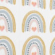 Een grillige boho stijl waterverf regenboogpatroon met een klein roze hart in het midden van de regenboog. Een perfecte muurbehandeling voor een meisjeskwekerij. Ook geschikt voor de kinderkamer van een jong meisje.