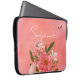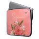 Boho Waterverf Roze Koraal Bloemen Script Naam Laptop Sleeve