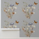 Kleed je kamer aan met dit prachtige, elegante, maar toch moderne boho vlinder wilde bloem behang. Gelegen op een grijze achtergrond met gele, crème en blauwe bloemen en een monarchvlinder die zich herhaalt.