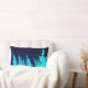 Een abstract kunstontwerp van verlichte bossen met bomen die tegen een zwarte nachtelijke hemel zijn gesilhouet.