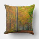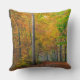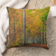 Foto's gooien het kussen met looiende bomen met bladeren in herfstkleuren en omgevallen bladeren op een pad in een bos in het Hoge Veluwe natuur reservaat in Nederland tijdens het herfstseizoen.