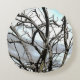 Een kunstontwerp van een boom in de winter. Zeldzame vorsttakken tegen een koude hemel.