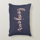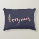 Bonjour. Leen wat stijl en francais naar je bank, bed of favoriete stoel met deze accentuil. Het ontwerp kenmerkt een diepe middernacht blauwe achtergrond van de marine met "Bonjour"in piek roze handgeschreven-stijl manuscript. Gebruik het facultatieve verpersoonlijkingsgebied om een naam, een monogram of een bericht aan de rug van de kussen toe te voegen.