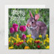 Cette carte à plat présente un design faunique printanier, avec un lapin sauvage et des fleurs de tulipe. Il y a un salut de vacances "Happy Easter" sur le devant et à l'arrière. Vous pouvez acheter comme indiqué de modifier pour ajouter votre propre texte.