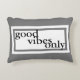 Ce design audacieux a texte de bonnes vibes seulement citent accent coussin sur le gris et blanc pour la décoration maison.
