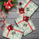 BONNES FÊTES ! En vichy vert classique avec typographie vert foncé et rouge bordeaux. Modèle photo via Pixabay sous licence CC0 et doit être remplacé par votre propre photo