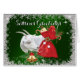 Saison de texte personnalisable ; s Les salutations peuvent être changées à n'importe quel message ainsi qu'à l'intérieur - Belle chèvre Saanen avec son sac de cadeaux et de cloches - elle regarde autour du sucre de canne qu'elle est sur le point d'attraper - adorable pour les amateurs de chèvres partout