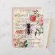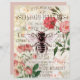 Mooie wijnoogstjaren en "standaardparfums", gecollageerd met roze rozen en bijen in het midden. Achterzijde van het blad in overeenkomende lichtroze.
