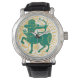 Boogschutter teken van de dierenriem in groen en wit op een polshorloge.