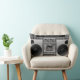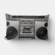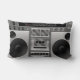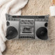 Retro hip-hop stijl cool ghetto blaster boom box radio graphic. Kleuren van zilvergrijs en zwart met een enkele cassette tape speler recorder en radio tuning. Grote luidsprekers zien eruit alsof je een bas zal beuken. Auteursrecht van het ontwerp © Cutecomfy.com