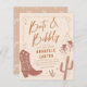 Deze Boots & Bubbly bruids douche uitnodiging is perfect voor een land-liefhebbende bruid-to-be. Met een grillige, handgetekende illustratie van een bloemencowboylaars, cactus, hoefijzer en klinkende champagneglazen. In een warm palet van beige, woestijnroze en verbrand sinaasappel is deze uitnodiging ideaal voor rustieke, boho- of landelijke vrijgezellenfeesten en cowgirl-, schuur- of western-geïnspireerde thema's. Als u van plan bent een bruids bash dat is gelijke delen land charme en girly glamour, zal deze uitnodiging de toon zetten! Als onderdeel van de budgetselectie van Zazzle is dit blad niet verkrijgbaar in standaardkaartformaten. Om dit ontwerp op een standaardkaart te krijgen, kunt u het in het collectie vinden of de Zazzle Make Machine gebruiken om het over te brengen op uw voorkeursproduct.