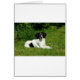 Een jonge, gezonde, mooie zwarte en witte Grens Collie hond die op het gras staat en er heel gelukkig uitziet. De Scottish Sheep Dog is een van de meest intelligente rassen.