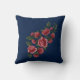 Borduurrode rozen Groene bladeren Floral blauw Kussen