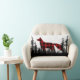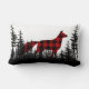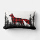 Een witte en zwarte winterkussen met een rode buffelpleister silhouet van een rode vos in een houtskool die een stil bos met een pijnboom met een witte vaste achtergrond maakt.