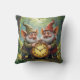 Twee vrolijke kabouters houden een grote klok vast terwijl ze in een zonovergoten bos staan