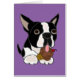 Schattige grappige puppy dog uit Boston die chocolade-ijsje eet, originele kunstwerk is geweldig voor hondenliefhebbers