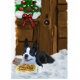 De Boston Terrier wacht op de sneeuw bedekte veranda om de Kerstman te bereiken, om de koekjes van de kerstman te bewaken. Geweldige kerstcadeautjes, kerstkaarten, briefing, kleding en nog veel meer.