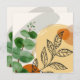 Botanisch boho ontwerp met groene, oranje en beige kleuren en waterverf elementen.