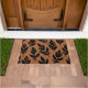 Een warme en natuurlijke deurmat met een zacht beige achtergrond en zwarte bladsilhouetten, die een vleugje natuur-geïnspireerde elegantie voor uw deur biedt.