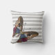 Moderne gooikussens voor de natuur enthousiast. Rendy grijze en witte strepen aan voor- en achterzijde, met een geverfde kleurde vlinder "off-centered" aan de voorkant van de kussen.