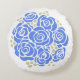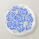 Elégante image graphique de rose stylisé bleu coussin rond. Idéal pour ajouter une touche de bleu floral graphique, blanc et une touche de vert sauge à votre maison.