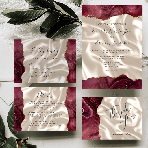 Burgundy Gold Agate Ivory Silk Wedding SuiteOntworpen door Akhates Designs