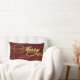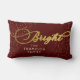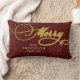 Groet uw gasten, vrienden en familie met dit stijlvolle en moderne kerstkussen van het vakantieseizoen, met een faux gouden handgeschreven scriptcitaat "Merry" aan de ene kant en "Bright" aan de andere kant, op een elegante bordeaux achtergrond, met gouden glitter. Voeg eenvoudig uw familie- of bedrijfsnaam toe om de sjabloon van de tekst aan te passen.