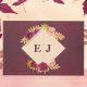 Elegant en romantisch bewaar de datumkaart met je favoriete foto, met waterverf rozen met herfstbladeren in rijke, warme, aardse kleuren op een bordeauxrode achtergrond. Een waterverf bloemenontwerp aan de achterkant van de kaart bevat geel, groen, verbrand sinaasappel en terracotta bladeren met een monogram op een beige achtergrond. Personaliseer de gegevens: bruid en bruidegom namen, datum en initialen. Voor meer overeenkomende trouwartikelen blader door mijn romantische Bourgondische herfstherfst bruiloft Collectie.