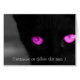 Deze verbluffende zwarte kat beangstigt me in het park in Puerto Vallarta, Mexico. Ik bewerkte de foto om zijn ogen paars te maken.