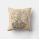 Een geïllustreerd hersendiagram gooit kussen met een ouderwetse antiek hersenillustratie op een lichtbruine of beige manuscriptachtergrond.