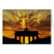 Foto van de Brandenburgse poort, Brandenburger Tor of Peace Gate, gedempt door licht van de zon die door wolken van achteren breekt.