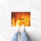 Een deurmat met een foto van een brand.