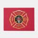 Deze deurmat is versierd met het brandweerMaltese kruis.