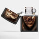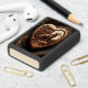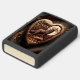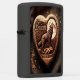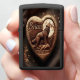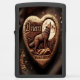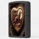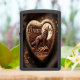Een houten hart gesneden met een wolf huilend naar de maan, omgeven door hoog gras, met de naam Brian en Wolf Moon hieronder.