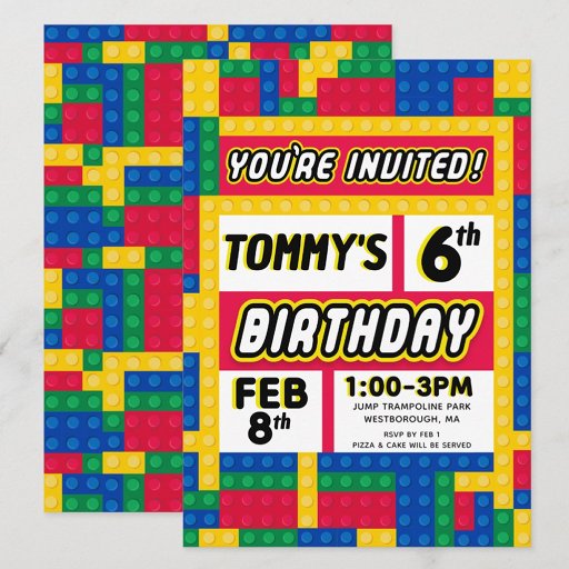 Brick Builder Customizable Birthday InvitationBrick Builder Customizable Birthday Invitation (Devant)Brick Builder Customizable Birthday Invitation (Dos)