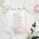 Fun & stijlvolle bruid- of groom-vrijgezellenfeest spelkaart. Fun game om te spelen op je vrijgezellenfeest feestje. Elegant blush roze glanzende jurk met gouden hanger op de achtergrond. De gamekaart kan worden aangepast aan uw lijst met vragen. Origineel kunstwerk en ontwerp door de Papier van de Mutalogie.