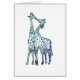 Afrikaanse giraffen zoenen, romantische tekenkunst. Blauw en groen mooie Afrikaanse tekening op een briefkaart.