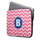 Bright Pink and White Chevron Pattern Monogram Laptop Sleeve