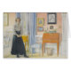 Vintage afbeelding van jonge vrouw in ouderwetse rok en boven aan een bureau. Mooie kunst van de Zweedse schilder Carl Larsson.