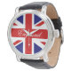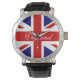 Brits vlaggen kijken | Klokdruk van de uniale Jack. met uw eigen douanetekst of naam. Het goedkoopste cadeauidee voor de Britse nationale en koninklijke evenementen. Engelse vlagkleuren; rood wit en blauw.