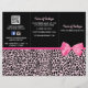 Faites une déclaration de mode avec ces prospectus triplés empreintes de léopard roses et noirs, avec un joli arc rose chaud. Ce design est parfait pour une liste de prix ou un aperçu de l'entreprise. Personnalisez en ajoutant le nom de la boutique de beauté, des informations sur les médias sociaux et le code QR. Pas votre genre d'entreprise ? Ce design a été créé en tant que modèle afin que vous puissiez facilement ajouter vos informations personnalisées à votre entreprise de choix. Image imprimée plate, NON apposée avec un arc ruban.