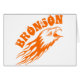 T-shirts Bronson Eagles, tasses, sacs fourre-tout, autocollants, boutons et bien d'autres produits personnalisables qui présentent un design de tête d'aigle orange avec flammes et le mot Bronson écrit dans une police de grunge orange.