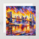 De Brooklyn Bridge, een architectonisch wonder voltooid in 1883, symboliseerde industriële innovatie en stedelijke elegantie. De overweldigende bogen en stalen kabels verbinden Brooklyn met Manhattan, belichamen tijdloze glamour en historische betekenis.Met behulp van de acrylstijl met gouden en lavendeltinten op dit iconische wonder.