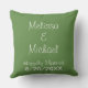 Blauwe Hydrangea met grote groene bladeren Bruiloft Kussen. FRONT of Pillow heeft de formulering, Love & Happiness met close-up foto van  blauwe hortensia. BACK of Pillow wordt getoond op een lichtgroene achtergrondkleur met gebied om te personaliseren met de nieuwe Bride and Groom's First Names en Wedding Date. Origineel Fotografie ontwerp van TamiraZDesigns.